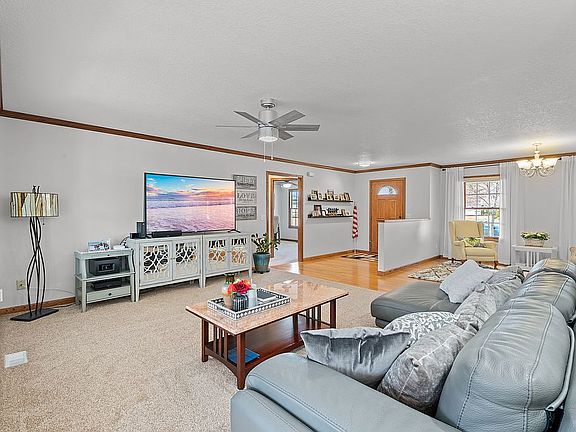 A beautiful home! This 4 bedroom 3 bath ranch has been extremely well-maintained. It boasts an open floor plan, new quartz countertops, tile back-splash, and lighting in kitchen, formal & informal dining areas with lots of natural lighting. The 3 season room overlooks the beautiful lawn and wooded yard with a creek running through it. The finished walkout basement with bedroom, full bathroom, gas fireplace and large recreational area offer plenty of space for entertaining. This home has had many upgrades including master bath flooring, A/C, and stainless steel appliances. This house has a very large 3 car garage, covered and uncovered deck, extended patio and storage shed.