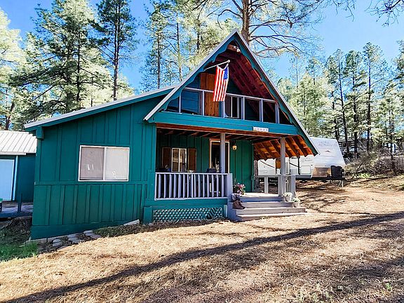 This super cute country cabin is ready to enjoy year-round. Located on an oversized tree-lined corner lot and borders the Apache-Sitgreaves National Forests with hundreds of miles of hiking, camping, fishing, and hunting. The picturesque town of Show Low is just minutes away.   With a little TLC, this cabin is perfect for a quick getaway and would make an excellent vacation rental.
