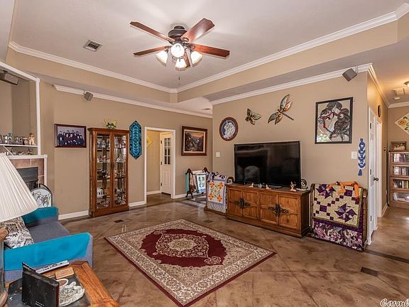 Home is located on a large corner lot with a big back yard with storage shed and vehicle gate access. The home has a split floor plan with the master away from the other bedrooms. Master includes a walk-in closet and wet room. Concrete floors throughout with tile in the wet areas and closest. Living areas have high ceilings. This property is located on the Benton/Bryant border. Just 25 minutes from downtown Little Rock and 35 minutes from Central Ave in Hot Springs. Features a new roof and new water heater (both 2022).