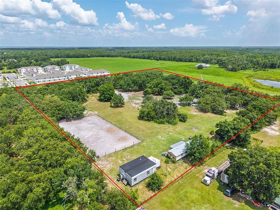 Welcome to your rural haven just minutes from city conveniences! This nearly 5-acre, fully fenced property offers privacy and versatility with trees surrounding the perimeter and a long, deeded driveway leading to your secluded retreat. The property includes two single-wide manufactured homes—a 3-bedroom, 1-bath main home and a 2-bedroom, 1-bath second home—perfect for a family compound or rental income. Animal lovers will appreciate the ready-to-use setup featuring 6 open horse stalls, 2 turnout pens, a feed shed, 2 chicken pens, and a duck pen. There are also banana and citrus trees on-site for added charm. The property is zoned for horses and can be subdivided into four lots under current zoning, offering great potential for future use. Conveniently located near shopping, restaurants, and major theme parks. Don’t miss this unique opportunity—schedule your private showing today!