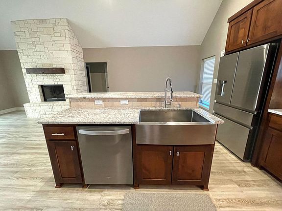 Beautiful 3 bedroom 2 bath 1606 sq. ft. home built in 2018. Home sits at the back of South Martin Branch subdivision in a quiet area and one of the larger lots. Open concept style, custom cabinets, Austin stone wood fireplace, kitchen island, granite countertops, farmhouse sink & pantry. The master suite has a large walk-in closet and a master bath with separate tub & shower & double sinks. Large utility room with sink & closet. Enjoy the covered patio with lights, fan and an extra uncovered patio area. 2 car garage with a side door that opens to the neighborhood green space. Internet, refrigerator, dishwasher, built-in oven, microwave & cooktop included! Tenant pays all utilities & handles yard maintenance. No smoking. Internet included. Tenant pays all other utilities. No smoking. General upkeep and lawn care responsibility of tenant.