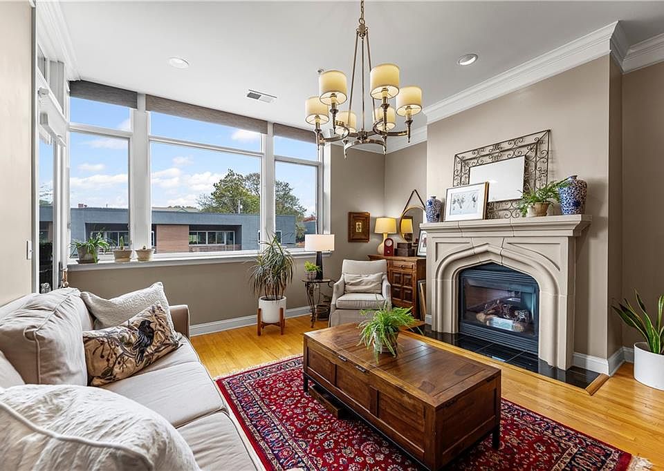 Experience elegant city living in this spacious condominium located in the historic Greenlease Cadillac building. The open floor plan is filled with natural light, creating a warm and inviting atmosphere throughout. The kitchen features a large island with seating, tall cabinets that extend to the ceiling for extra storage, and stainless-steel appliances that stay with the unit. The living room offers timeless character with its gas fireplace and opens to an private covered patio—perfect for relaxing, entertaining or gardening. A separate dining area provides additional space for gatherings. The spacious primary suite accommodates a sitting area and home office. The luxurious bath includes classic subway tile, a jetted tub, and a separate walk-in shower. The customized walk-in closet offers excellent storage and washer/dryer. The second bedroom, den, or office is conveniently located off the beautiful entry hall. Additional highlights include high ceilings, crown moldings, and hardwood floors throughout. Assigned garage parking included in the HOA. Enjoy the best of Union Hill—just steps from restaurants, coffee shops, bars, and shopping. The nearby streetcar provides easy and convenient transportation.
