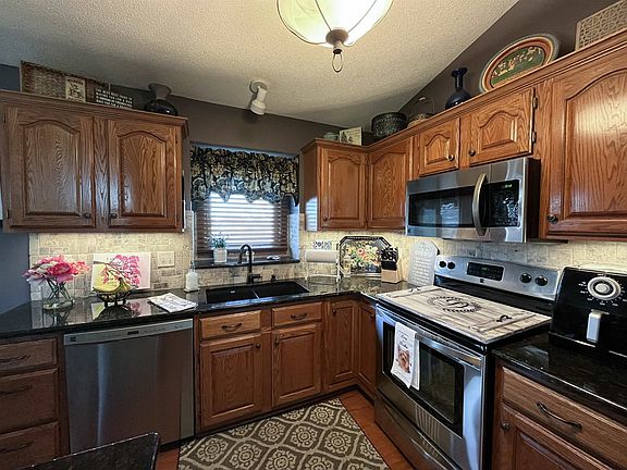 Don't miss out on this well maintained and updated house in the great Aberdeen community in west Wichita and the Maize school district! This three bedroom, three bath home checks a lot of boxes. Upon entry you will notice the living rooms vaulted ceiling, fire place, and hardwood floors. The kitchen features stainless steel appliances and granite countertops. The spacious finished basement features a wet bar and fireplace perfect for entertaining. Enjoy outdoor living on your wood deck with privacy of open field behind home. Large fenced yard with sprinkler system, irrigation well and storage shed. Updates and additions to the home include hardwood floors, granite counter tops, carpet, vinyl windows, window coverings, whole house humidifier, backup sump pump, sink in the garage, and an additional fireplace was added in the basement.