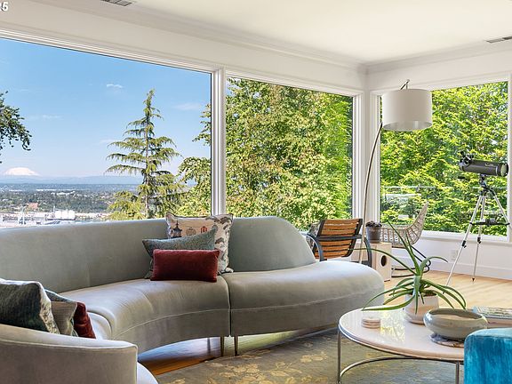 Beautifully remodeled with amazing detached ADU! Perched in sought-after Kings Heights, this mid-century gem exudes personality, framed by sweeping views of the city and four mountains. Recently reimagined, the home is a vibrant showcase of color and style, creating a fun yet calming atmosphere. The detached ADU is a masterpiece in its own right, featuring a sleek kitchen with premium appliances, a luxurious bathroom, a washer/dryer, and a sauna. With its private entrance, it’s ideal for guests or rental income. Rents currently on Air BnB for $4,100/ mo. The primary suite in the main home is a serene retreat, complete with a private patio, ensuite bathroom, double closet, and stunning views of Mt. Hood. The remodeled kitchen boasts high-end appliances, a quartzite island, and an open layout connecting the kitchen and family room. Step out to an oversized two-tiered deck overlooking tranquil Japanese garden with a waterfall, offering a perfect indoor-outdoor flow from the kitchen, living room and lower family room. An attached two-car garage with extra storage and gated entry completes this incredible property. Located near top-rated schools, trails, parks and close to the best of downtown and NW 23rd Avenue, this home offers a lifestyle of comfort and convenience. [Home Energy Score = 5. HES Report at https://rpt.greenbuildingregistry.com/hes/OR10156515]
