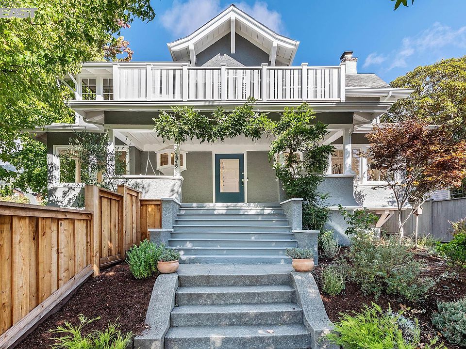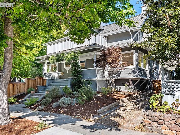Welcome to the Honeymoon House, built by architect Leola Hall for herself and her new husband. Her finest of the many craftsmen homes she designed throughout the Elmwood. Spectacular, sun-drenched two-story living room, coffered dining room, ornate period details, and expansive windows, one block from Elmwood cafes and shops. Designed originally for entertainment and acoustics. Large bedroom on the second level was once two bedrooms...could possibly be converted back to two bedrooms making it a 4 bedroom home once again. Two full baths, one recently renovated. House was retrofitted in 2017. New roof and insulation. Original hardwood floors throughout, recently refinished. Partially finished basement (not included in square footage) for plenty of storage or work space, or finish it for extra livable space. New double pane windows on the main-level bedrooms. Private fenced in yard and side patio. Sun-filled upstairs balcony, ideal for lounging amongst the canopy of trees surrounding the property. Walking distance to post office, movie theater, schools, and the Claremont Hotel. Easy and pleasant walk or bike ride to Cal, less than a mile away, through the Elmwood neighborhood of historic homes and tree-lined streets. Multiple bakeries and coffee shops within a few blocks walk.