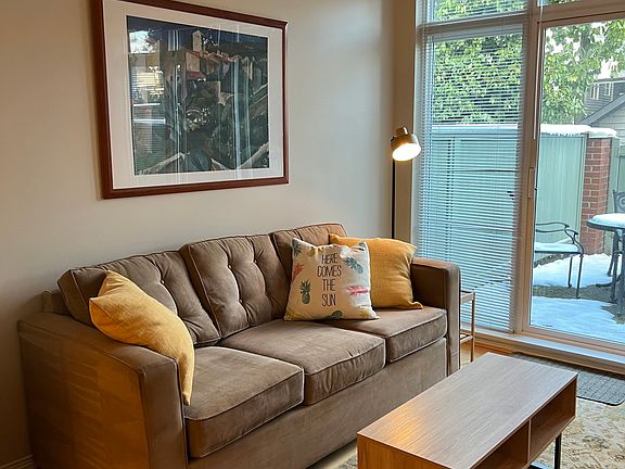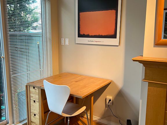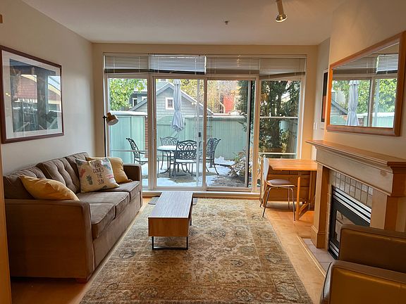 West 4th Kitsilano furnished studio condo is move-in ready on March 1, 2025! The Madison, at West 4th and MacDonald, is 3 blocks away from the waterfront Volunteer Park. Kits and Jericho beaches are also just blocks away. This cozy, ground floor fully furnished studio is within close proximity to UBC and only 15 minutes to downtown Vancouver with easy access to public transit and a variety of restaurants, coffee shops, and shopping nearby. FEATURES: Wonderful ground level, bright, N-facing furnished studio condo with large 195 sq ft private, fenced-in back patio. Full-sized, fully equipped kitchen features breakfast bar, maple cabinetry, integrated fridge, new stainless dishwasher and stainless 4-burner range and microwave. Unit is fully-stocked with cooking equipment and utensils. The living area has maple hardwood floors, a gas fireplace, Murphy bed, full-sized sofa, swivel leather arm chair, coffee table, lamps, dining table and chairs, bookcase, large hutch, desk/table and chair, patio table, chairs and umbrella. Floor-to-ceiling glass wall/doorswith blinds, allows for lots of light and provides patio access. The 3-pc bathroom includes a tub/shower and there is an in-suite washer and dryer. Rent includes natural gas (fireplace). The fireplace heats the majority of the unit, with an electric baseboard in the bathroom. Propane bbq's are allowed on the patio. One year lease required. Optional parking stall available for $60/mo. Owner pays for gas fireplace which heats entire space except for electric baseboard in bathroom. Renter pays for electricity and wifi. One-year lease required. No smoking allowed. Optional assigned parking space in underground garage is available for an additional monthly fee of $60.