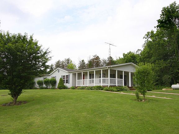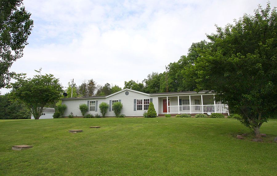 View the Tour Country ranch situated on 2.674 acres, located in East Knox School District, features include 3 bedrooms and 2 full baths, large living room with wood burning fireplace and glass sliders that lead to the covered wrap around porch, adjoining dining room, cabinet filled kitchen with center island and includes the major appliances, convenient main level laundry, master bedroom suite with deluxe master bath, propane forced air heating and central air conditioning, detached 3 car garage, yard barn for added storage, nicely maintained and priced to sell at $110,000.
