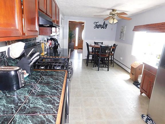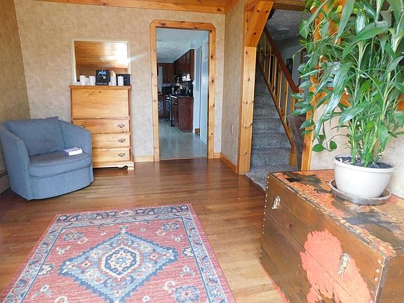 Welcome home! This 4 bedroom 2 bath home is perfect for a growing family! Large kitchen with cherry cabinets and plenty of counter space for cooking and baking some treats. The living room is spacious with a fieldstone wall and beautiful beams that add just a little character and charm. The main floor has 1 bedroom and full bath. The 2nd floor has 3 bedrooms all hardwood floors and a full bath. Enjoy morning coffee on your back deck or cocktails after a long day, nice yard with room for kids to play or yard games for adults! Furnace replaced 2yrs ago and roof almost 8yrs ago, so big ticket items have already been done. This home also has solar panels to help save on your energy costs.