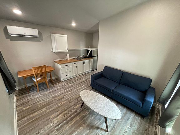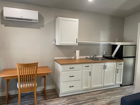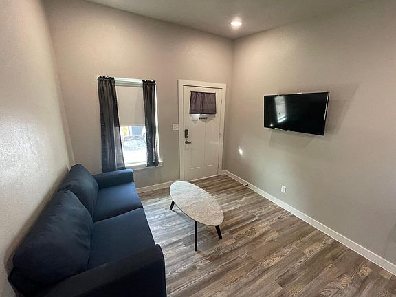 Modern cabin style community with furnished unit, all utilities included. Furnishings include fridge, convection microwave, desk, coffee table, sofa, smart tv in living room, window coverings, bed frame and mattress, and end tables. Each unit comes with one parking space, additional parking is onsite. Luxury vinyl wood look flooring throughout. Community Wi-Fi. All utilities included, one parking spot per unit with additional community spots, two person max occupancy limits, free community wifi, coin operated community laundry facility onsite. BOTH Applicants must provide legal identification , monthly income must be 2.5X monthly rent and following: 1) Pass a criminal history background; (2) previous rental history; (3) Proof of current income; (4) Credit Requirement: A credit report will be obtained on all applicants to verify credit history and credit rating, including credit score. Unfavorable accounts may negatively impact the screening results to determine eligibility and security deposit amounts . The scoring system software will approve, approve with conditions or deny. Additional deposits will be required for any conditional status. Pending and open bankruptcies will result in an automatic denial of application. Discharged bankruptcies in the last 7 years may result in an approval with additional deposit, pending all other screening criteria and factors are met. (5) Commit 1 year lease NO Smoking allowed in home Limit of one pet per household.