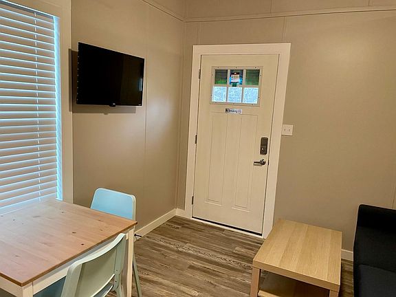 Modern cabin style community with furnished units, all utilities included. Furnishings include fridge, convection microwave, dining set, coffee table, sofa, smart tv in living room, window coverings, bed frame and mattress, and end tables. Each unit comes with one parking space, additional parking is onsite. Luxury vinyl wood look flooring throughout. All utilities included, one parking spot per unit with additional community spots, two person max occupancy limits, free community wifi, coin operated community laundry facility onsite. BOTH Applicants must provide legal identification , monthly income must be 2.5X monthly rent and following: 1) Pass a criminal history; (2) previous rental history; (3) Proof of current income; (4) credit history (5) Commit 1 year lease NO cats allowed. Small dogs up to 25 pounds with pet fee. NO Smoking allowed in homes.