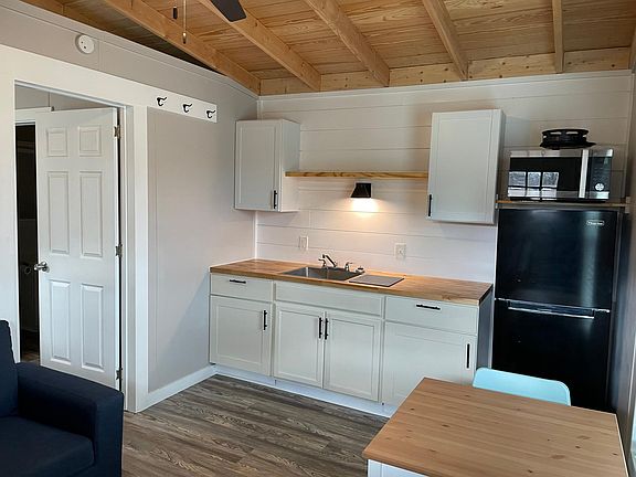 Modern cabin style community with furnished units, all utilities included. Furnishings include fridge, convection microwave, dining set, coffee table, sofa, smart tv in living room, window coverings, Full Size bed frame and mattress, and end tables. Each unit comes with one parking space, additional parking is onsite. Luxury vinyl wood look flooring throughout. All utilities included, one parking spot per unit with additional community spots, two person max occupancy limits, free community wifi, coin operated community laundry facility onsite. BOTH Applicants must provide legal identification , monthly income must be 2.5X monthly rent and following: 1) Pass a criminal history background; (2) previous rental history; (3) Proof of current income; (4) Credit Requirement: A credit report will be obtained on all applicants to verify credit history and credit rating, including credit score. Unfavorable accounts may negatively impact the screening results to determine eligibility and security deposit amounts . The scoring system software will approve, approve with conditions or deny. Additional deposits will be required for any conditional status. Pending and open bankruptcies will result in an automatic denial of application. Discharged bankruptcies in the last 7 years may result in an approval with additional deposit, pending all other screening criteria and factors are met. (5) Commit 1 year lease Small dogs under 20 lbs with pet fee (non-refundable) are allowed NO Smoking allowed in homes.