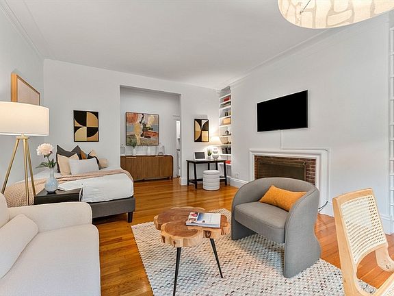 Pristine oversized front facing Back Bay parlor! Located in a meticulously cared-for professionally-managed, highly owner-occupied pet-friendly building in a premier location. This gracious home features wood floors, high ceilings, and bowfront windows overlooking a beautiful front garden. Generous great room with built-in shelving and ornamental fireplace. Renovated kitchen features dishwasher, quartz counter with undermounted sink and gas range. Double-height Kitchen-Maid wood cabinets, soapstone rear counter, glass-tile backsplash, full size fridge. Bathroom was also recently redone featuring marble mosaic-tile floor, bathtub with subway tile surround. Versatile floorplan. Free common laundry in basement one flight down. Low condo fee incudes, heat, hot H20. Close to hi-end Newbury/Boylston/Copley/Pru shopping and dining. Near T, highways, walk to financial district. Young roof and heating system. Floor plan in photos. Seller welcomes offers with requests for buyer concessions.