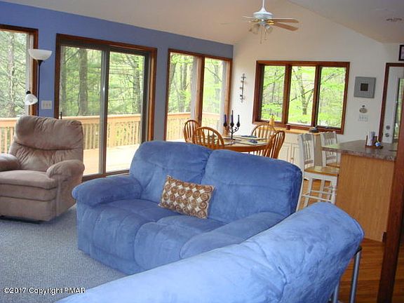 Very Private Contemporary (3)Bedroom (2)Bath w/Full-Dry-Basement & Loft.. Lots of Windows in the Living Area Offer Fantastic Woodscape Views all Year Long.. Living Room Slider Accesses Large Upper-Deck Area..Large Walk-Out Basement Accessing Large Lower Deck Area...Screen Porch Offers Vantage View of Mountain Stream.. Rear of Property is Adjacent to Green-Belt Area for Total Privacy...