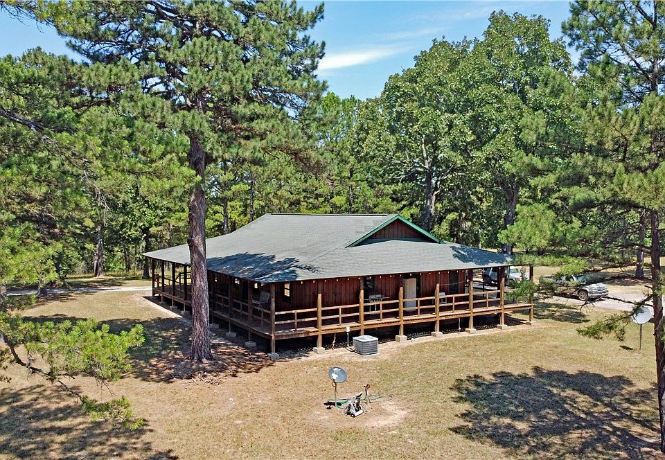 28 acres located approx. 15 mins from Eureka Springs w/lots of privacy. Approaching you see the pipe fencing and solar powered gate at the entry. As you enter the park like setting w/large pines, you will notice the well maintained property. The Cedar sided home has a wrap around porch, 10' front and back and 8' on sides, perfect for family gatherings and watching deer and other wildlife. The deck has rustic lighting plus ceiling fan. Trimmed beautifully it blends in to the wooded environment. As you enter, this 3 bed, 2 bath home you will find tongue and groove ceilings, wood and tile floors, walk in closets and a large pantry w/laundry area. In addition a 2 car garage constructed to match the home. The garage is a large shop area, bathroom and cedar lined closet. It is heated and insulated, Lovely garden area just outside! 5 minutes from Eagle Rock Marina with access to table rock lake. 1000 gallon propane tank plus buried electric lines. Great place to retire or raise a family!