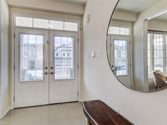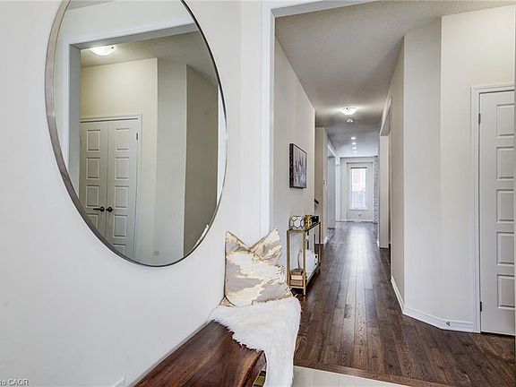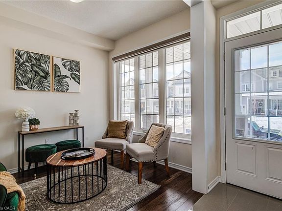 BEAUTIFUL 3192sf FAMILY HOME IN RIVERLAND. Welcome to this beautifully designed 4-bedroom, 3.5-bathroom home located in the highly sought-after community of Breslau—just minutes from Kitchener, Cambridge, Guelph, and the regional airport. This home boasts parking for four, including a double-car garage, and offers a carpet-free main level. Upon entry, you’re greeted by a bright sitting room with large windows that flood the space with natural light. The spacious dining room is perfect for entertaining, while the eat-in kitchen features stainless steel appliances, ample cabinetry, and a separate pantry area for extra storage and food preparation. The large living room showcases a stunning white stone feature wall with a gas fireplace, creating a warm and inviting atmosphere. Step outside to the backyard through the kitchen area, perfect for outdoor enjoyment. Upstairs, the second level is home to all four bedrooms, a convenient second-floor laundry room, and three bathrooms. The primary suite is a true retreat with double-door entry, a bonus storage room, and a luxurious 5-piece ensuite. The unfinished basement provides a blank canvas, ready for your personal touch. Don’t miss this incredible opportunity to own a spacious, well-appointed home in a prime location!