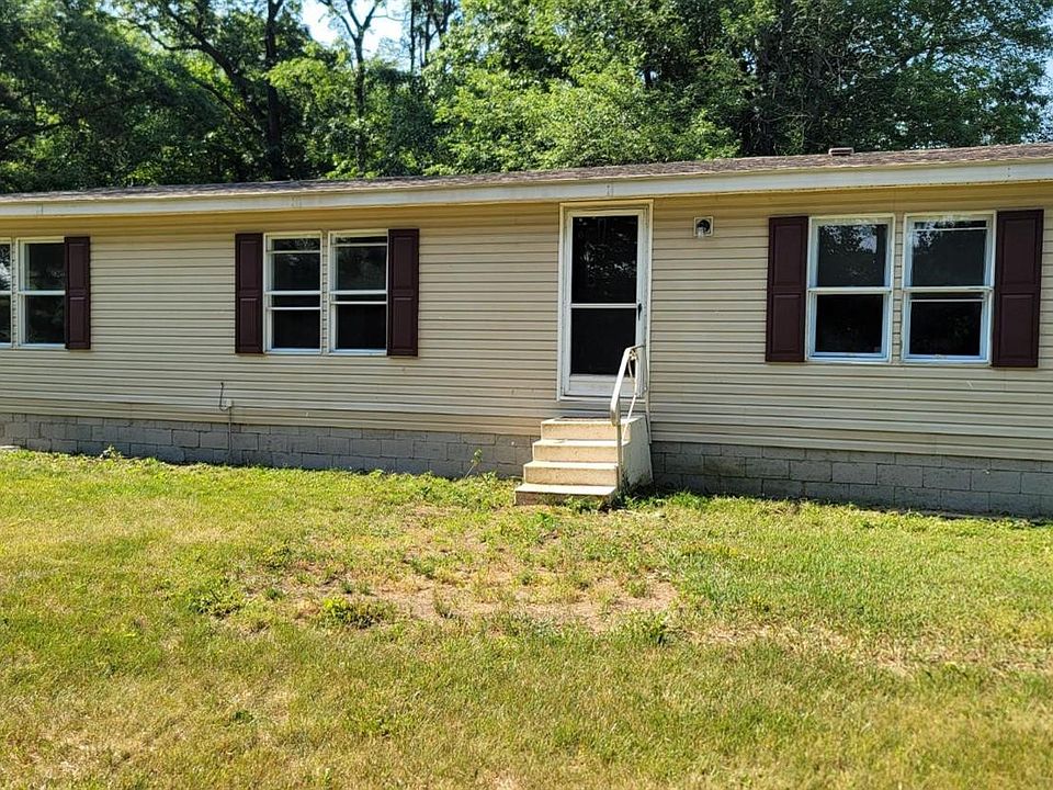 QUIET COUNTRY LIVING ON 4.56 ACRES. Nicely updated, split bedroom, open concept floor plan. Owners' suite has a full bath and a walk-in closet. New flooring, updated kitchen and baths and new roof and windows. Location is key here, only short distance to highway 49 and on a dead-end street! Property is beautiful and has so much potential with mature trees and space for extra buildings. Wildlife includes deer and turkeys!! Don't miss this one!!
