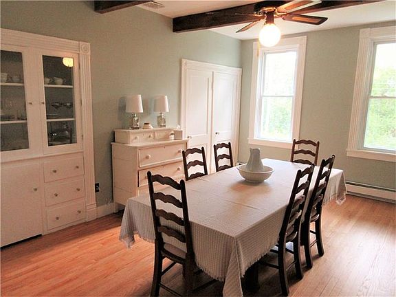 This well-maintained farmhouse sits on 5 beautiful acres of land. The eat-in kitchen boasts gleaming hardwood floors, a large granite island, & great built-in pantry. The dining room has built-in china closets, hardwood floors, & real wood beamed ceilings. The living room features a decorative fireplace & mantle. A 10x5' mudroom is located off the living room & kitchen that opens to the 18x16' deck. The home offers 3 bedrooms with plenty of closet space & the master has a door leading to the huge walk-up attic. A 9x7' area between bedrooms could be an office area! The fin. lower level has a huge 29x14' family room & full bath which is great for entertaining! The landscape can be enjoyed from the cov. front porch & side porch, & large deck, all easily accessible from the main level! A barn & oversized 1 car det. garage are on the property. The barn currently has 4 stalls but could have 6 & is conveniently located near the farmhouse. The property could be used for a variety of purposes!