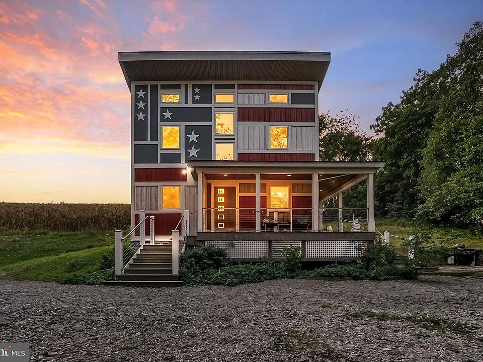 Welcome to this beautifully maintained home that combines charm and modern touches in all the right places. As you step inside, you're greeted by high ceilings in the entryway, creating a bright and open first impression. The half wrap-around porch invites you to relax with your morning coffee or unwind in the evening. Inside, you'll find gorgeous modern finishes, stylish lighting, and plenty of natural light throughout. The main level offers a cozy living room with a fireplace, a combined kitchen and dining area with a built-in booth-style nook, a convenient half bath, and a dedicated laundry/wash room. Upstairs features two comfortable bedrooms and a full bath with a double vanity. Step outside to enjoy the peaceful surroundings, where you're greeted by lush green trees, a patio area perfect for grilling and entertaining, a garden space with a shed, and a cozy fire pit for those crisp evenings. Best of all, the backyard offers direct access to the Susquehanna River, providing a serene backdrop and endless opportunities for outdoor enjoyment. This home is truly move-in ready—schedule your tour today before it's gone! Inclusions: Most indoor furnishings, 2 kayaks, chicken coop and run, Adirondack chairs and fire pit, metal table and chairs (outdoor set) and Blackstone griddle.