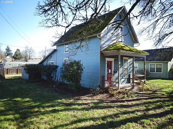 Charming turn of the century with old fashioned covered front porch. 3 bdrms 1.5 bath. Plumbed for 2nd bath upstairs. Large fenced back yard. Near WOU. Needs work but great potential.