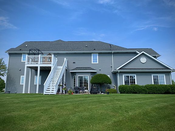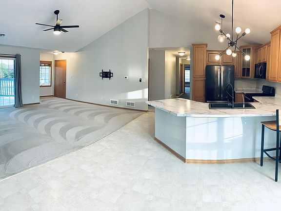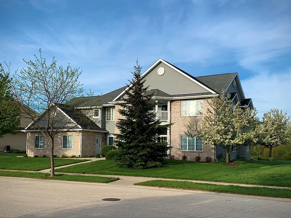 Snow and Yard care included! Just move right in.Fully Updated. New furnace and A/C (Dec 2021), water softener (2021), painted neutral-colored walls &ceilings throughout (2020), new kitchen appliances, washer and dryer, toilets, lighting, ceiling fans, kitchen countertops, reverse osmosis water system, garbage disposal, and farmhouse sink (2019). Open concept floor plan, cathedral ceilings, big windows, and a large private backyard overlooking a beautiful pond. Main living space flows nicely to the updated kitchen and dinette.large master bedroom has a walk-in closet and private bath with dual sinks and shower.two guest bedrooms are at the other end of the unit This property includes TWO private balconies! You'll also find in-unit laundry, a private entrance and 2.5 attached garag