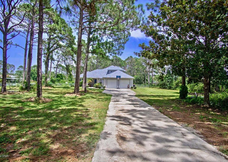 NEW PRICE. Best deal in Panama City Beach if you're wanting quality construction, amazing location and space to play! This 2,400 sq.ft. home sits on a beautiful, almost 2 acre parcel. Not only will you love the privacy and amazing location of this beautiful home, it's also perfect if you want horses, goats and/or parking for your boat or RV. Finding a property like this is very rare and the possibilities are endless! Bring out your inner chef in the spacious eat-in kitchen. Highlights include a gas stove with a hidden range hood, in-cabinet oven, tons of cabinet space, tile back splash, updated stainless steel refrigerator, tile flooring and plenty of counter space for preparing your favorite meal