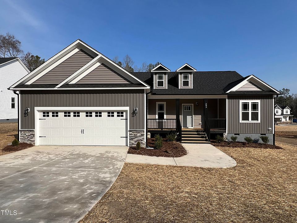 Craftsman-style RANCH with modern-farmhouse flare. Relax on the beautiful covered front porch and then step through the breathtaking foyer into the spacious living room with a CATHEDRAL CEILING. The heart-of-the-home kitchen offers gorgeous soft-close shaker cabinets, tile backsplash, stainless steel appliances (microwave vented to the outside), recessed & pendant lights. Retreat to the stunning Main Suite with a DOUBLE-TRAY CEILING, 2 walk-in closets with custom-built WOOD SHELVES and a spa-like bath with garden tub & separate vanities. Split floor plan. Open the BARN DOOR to the laundry room. New Phase in ESTABLISHED NEIGHBORHOOD. Wonderful location near Flowers Plantation -- shop at nearby Publix & Harris Teeter. Small, local builder - feel the difference. *MOVE FAST & MAKE SOME SELECTIONS*