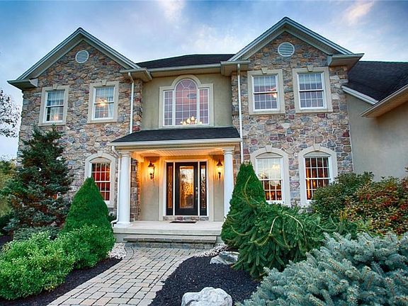 One of a kind 4 BR, 5 1/2 bath custom built 4500+ SF home with quality at every turn. From the crown molding, shadow box trim plus hardwood and ceramic tile floors to the 2 story family room with stone fireplace. This home is anything but ordinary. First floor office for the telecommuter. Spacious gourmet kitchen with granite. Amazing master suite plus 3 additional bedrooms, each with its own full bath and walk-in closet. Huge 3 car garage with basement access. Top of the line mechanicals include 2 - 200 amp electric services and a 4 zone oil fired hydronic heating system. The full basement consists of a spacious rec. room, full bath, large utility room and plenty of storage. This awesome home is situated on over 8 acres (approx. 3 open and 5 wooded) in the desirable Nazareth school district. Donât miss the opportunity to own this quality home. See it today!