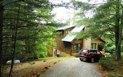 Your mountain cabin awaits with close-up and distant mountain views of the USFS. the circular drive brings you to the open front deck , side porch and larger back deck for your outdoor enjoyment. Nice sized living area with wood floors, a dining area w/bay window and huge ceilings with big glass windows by gorgeous stone fireplace, large master bedroom with bath and a sunporch with slate floors and a storage room beyond. Upstairs is a large loft bedroom and bath. A detached single-car garage has previously housed compact vehicles and the yard is packed with lush landscaping. Except for personal items, all furnishings are included with the Purchase Price. Seller will look at all offers on this turn-key property.