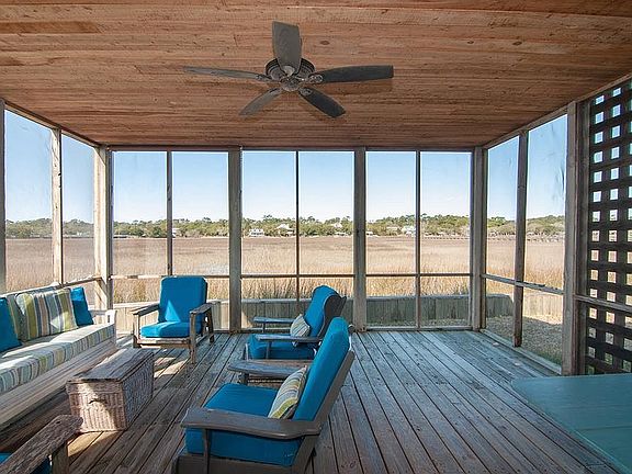 Lovingly preserved 130 year old beach home will immerse you in authentic Pawleys Charm. You’ll enjoy this exquisite perch over the salt marsh creek so much that you might forget the beach is only a short walk away. Ground level living provides easy access to the common areas as well as to one en suite bedroom. Top floor hosts three bedrooms, each with its own creek view, as well as two full baths and washer/dryer. screened porch offers stunning marsh level view