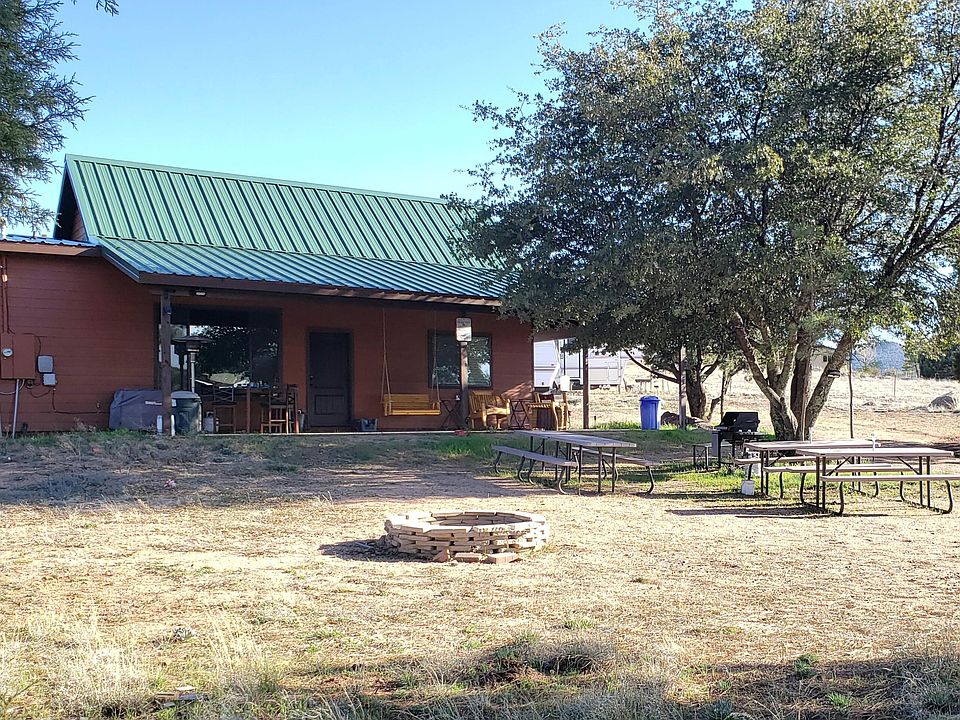 SELLER WILL FINANCE ! NEARLY NEW CABIN-STYLE home tucked in the trees with 10-foot wide wraparound porch, steel roof and hardiboard siding. Great weekend getaway, hunter's hideout or short-term rental!! Finished with TNG pine paneling, granite counters, and laminate flooring. Huge great room for family gatherings or entertaining your friends! Cabin has spacious combination bath-laundry room, economical heating/cooling, and loft for sleeping guests. Private well has a 1500-gal water storage tank that's protected from weather in its own insulated storage shed. 3 RV electric receptacles (one 50-amp and two 30-amp), plus water and sewer hook-ups! DETACHED 30'X20' garage/workshop with double door entry on one end and single roll-up door in the opposite corner. Built-in 8-foot long, stout wood frame workbench. Combined square footage of both structures is 1,464 +/-. 20-foot Conex box for storage is included. Gated entry and circle drive. This 1.5-acre parcel is in a neighborhood that's not restricted. New electric service mast installed before close of escrow.