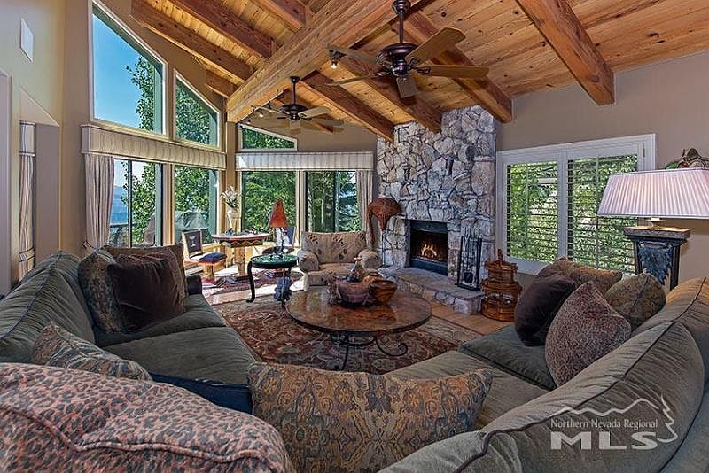 Upscale, updated very spacious home with beautiful lake views on a street-to-street .42 acre. Enjoy stunning sunsets from the large lake view deck which also has a remote control awning. The main living level has an open entertaining floor plan with a gourmet kitchen with granite counters and breakfast dining bar, 2 living areas with wood burning fireplaces separated by the dining area. The lake view air conditioned master bedroom has wood vaulted ceilings, with an adjoining sitting area and fireplace.