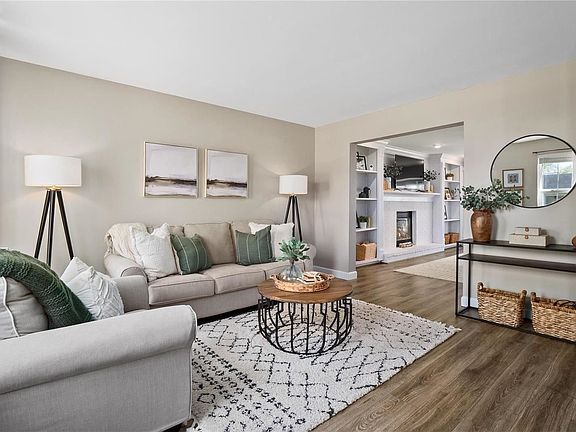 Don't wait to see this beautifully updated 2 story home with stone and brick front and an oversized 3 car garage. The 2 story entry welcomes you into the home. You will quickly notice the updated paint and sylish lighting throughout the home. The main floor features a dining room, living room and family room with built in book shelves and gas fireplace that opens into the breakfast room and kitchen. The main floor has ceramic tile and updated luxury vinyl flooring. It also includes a half bath and main floor laundry. Upstairs you will find 3 secondary bedrooms and a full bath. Large master bedroom with vaulted ceilings and walk in closet leads to the master bathroom with separate shower tub. Outside you can enjoy the fully fenced yard and patio. Newer roof, carpet, dishwasher and garage door opener. Located near robust highway K and easy access to Hwy 70, 364 and 40.