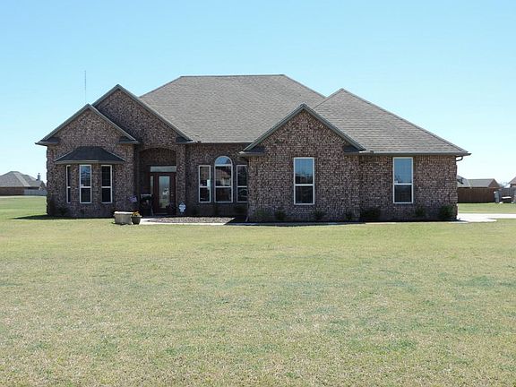 This elegant home boasts high ceilings, crown molding, granite countertops throughout. Designer tile and custom tile work, rich cabinetry and great floor plan for a large family. Walk into large open entryway and living area with tall pan ceilings and corner fireplace. The kitchen is open to a formal dining room or could be a family room. There is also a breakfast area large enough for family sized dining table. The home features a king size master suite and master bath has separate sinks and vanity with a corner whirlpool tub, and two walk-in closets. The second bedroom is down the hall from the master with a full bath in the hallway, would also make for a great office area. There are two more bedrooms on the other side of the house as well as another full bath. The home sits on a one acre lot with a storm shelter in backyard. Home is close to Good Year and other industry in Lawton. Cache Schools and only 10 minutes to shopping or 15 to Ft. Sill. Great location, awesome view. Call Nita (580) 512-7813 for more information or to view this wonderful home.