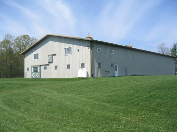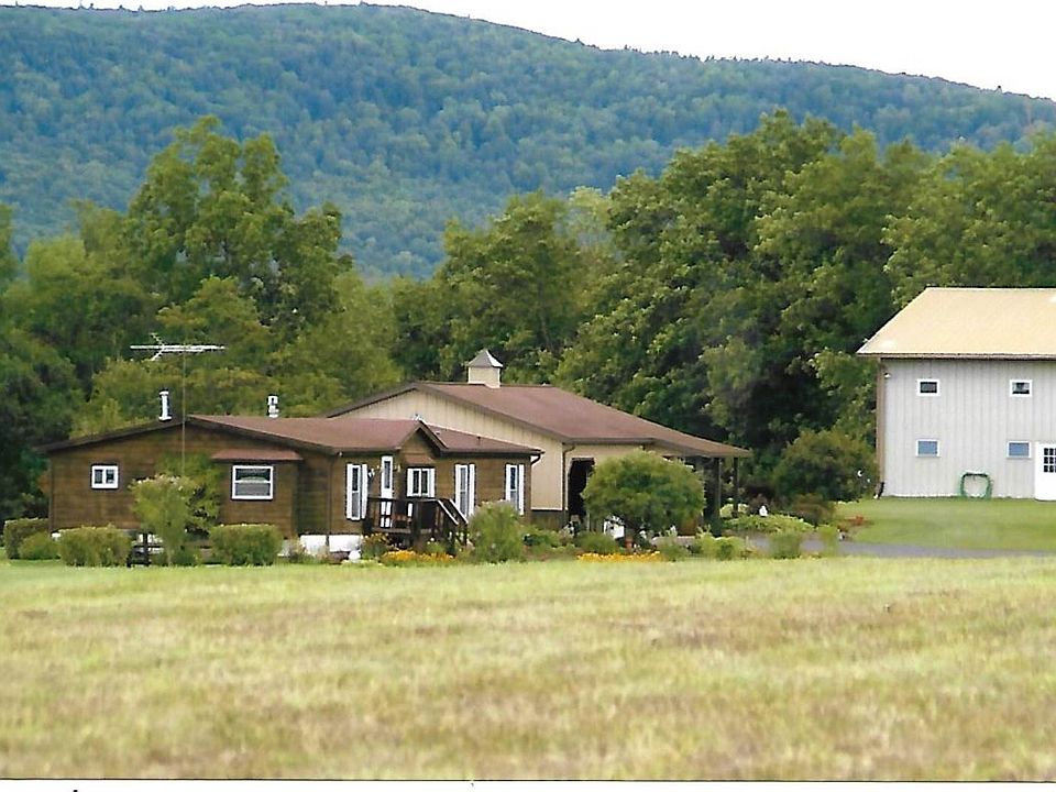 -- Schoharie County. Cobleskill, NY Here is a impressive 10 acre mostly level farm with a 1/2 acre pond. Ideal for horses, crops or veggies. Additional adjoining land can be purchased. Included is a 60x120 insulated Morton built fully enclosed insulated barn with 6 stalls and a nice 2/3BR rental apt, Just Imagine what you could do with this building. Also a separate 30x50 building for 2 cars plus large heated family room for any occasion. Attractive 3Br 2Bath ranch style home with very nice outside deck to enjoy the views and wildlife from. Everything very well maintained and landscaped. Long private driveway. Must see to appreciate all it has to offer. 45 minutes from Albany NY Owner retiring. Offered at $419,000. Call for info and appt. This is in ideal condition and location to escape the urban life and have unlimited opportunity