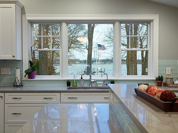 Touisset! Colonial with water side porch and unobstructed water views of the Coles River. This renovated home features a large living/dining room combination with a fireplace, a brand new kitchen with cathedral ceiling, quartz counters, center island, s/s appliances and a beautiful view too! There is a sought after 1st floor master suite with a new ceramic tiled bath with a shower & double vanity sinks & a walk in closet/dressing room. There is a cozy family room with cathedral ceiling and built-ins. An office & tiled bath with a separate tub & shower complete the 1st level. The second level has 2 additional bedrooms and a full bath. Recent updates, in addition to the kitchen, include a high end efficiency heating system, carpeting, roof, windows & an oversized shed. Optional neighborhood Coles River Club Association located directly across the street offers beach, boating, tennis & summer functions. NO FLOOD INSURANCE REQUIRED.