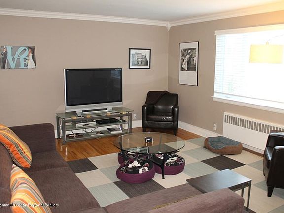 This 2 Bedroom Lower Level Unit has it all! Spacious Living Room and Dining Room for entertaining. Beautiful Hardwood Floors and Crown Moldings throughout. Kitchen has breakfast bar, newer microwave and dishwasher. Plenty of Closets. Over sized One-Car Garage with additional storage. There is also additional private resident parking. Newer Windows. This is a pet friendly community. Laundry on premises. Convenient location. Short distance to all Red Bank has to offer!