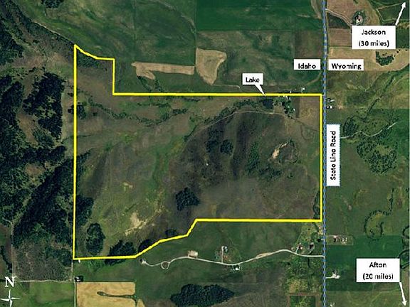This scenic Black Mountain Ranch includes 383 acres 20 miles northeast of Afton, Wyoming. The property includes beautiful meadows, a large open bowl, year-round streams, and a state-of-the-art fishing lake stocked with trout. There are spectacular 360 degree views of Star Valley, the Salt River, Black Mountain (8,980 feet) and the Webster Mountain Range. The property includes water rights for irrigation, stockwater, and water storage in the pond. There is year-round access along State Line Road. The improvements on the property include cabins, bunkhouses, a picnic building, and other outbuildings.- 383 acres located 20 miles northwest of Afton, Wyoming- State-of-the-art fishing lake stocked with trout- Scenic meadows, large open bowl with year-round streams- Beautiful 360 degree views of Star Valley, Salt River, Black Mountain (8,980 feet) & Webster Mountain Range- Water rights for irrigation, stockwater, and pond- Year-round access along State Line Road- Cabins, bunkhouses, picnic building, and other outbuildings- Zoned Recreational Forestry & Grazing - 1-acre minimum lot size- Elevation ranges from 5,695 to 5,971 feet- 30 miles South West of Jackson & 5 miles South of Palisades Reservoir