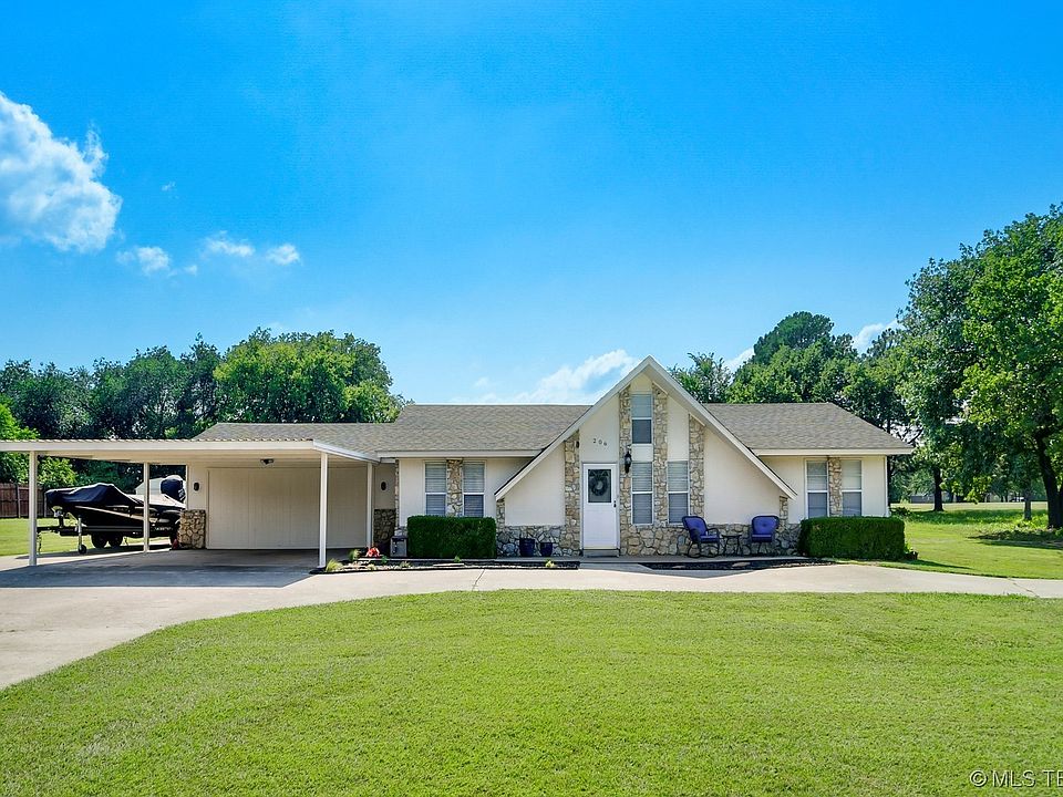 This beautiful farmhouse-style home has been thoughtfully updated with new wood-like flooring, creating a warm and inviting atmosphere throughout. The bright living room features a cozy fireplace, perfect for snuggling up on chilly evenings. Updated countertops in the kitchen make meal prep a breeze, and the ample storage space ensures that every kitchen gadget has a place to call home. Split bedrooms provide added privacy, making this home perfect for families or those who love to entertain guests. The storm shelter offers peace of mind, ensuring that you and your loved ones are always safe and protected. This home also features a convenient storage building, providing ample space for all of your outdoor gear, tools, and equipment. Whether you're an avid gardener, DIY enthusiast, or simply need a place to store your holiday decorations, this storage building has you covered. Double lot, perfect for building a pool, large shop or guest house. Road frontage on both sides. Located in the charming town of Lone Grove, Oklahoma, this home is the perfect blend of modern convenience and classic farmhouse charm. Come see this stunning property today and discover your dream home!