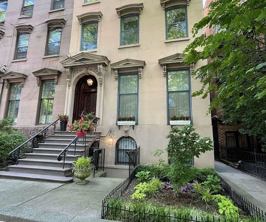 SIZE MATTERS!! (5,072 sq. feet of living space) especially if you are directly in FRONT OF THE PARK. A truly extraordinary 25' wide Brownstone Townhouse on a 100' deep property, detached on 3 sides. This gem was built across from the center of Van Vorst Park, where only premier townhouses where built on this QUIET tree-lined street (where there are NO buses or two way traffic on this street). Completely renovated in 2004 and just underwent an extensive restoration over (10) months, integrating boundless elegance yet so easy to live in - the public gathering rooms offer the space and comfort for both grand entertaining and quiet gatherings. The impressive parlor, with floor to ceiling windows consists of a formal and an informal living room, a formal dining room and a spacious eat-in kitchen that overlooks a serine bluestone backyard. This four (4) story townhouse has five (5) bedrooms, four (4) full baths, four (4) fireplaces, four (4) skylights, along with front and rear gardens. The gracious bedroom floors include a third floor master suite that faces the green canopy of Van Vorst Park along with an abundance of closets. Additional luxuries of this remarkable brownstone includes a 2 bedroom, 1 bath lower level apartment currently rented to help cover the annual taxes and insurance expense. 3 laundry rooms, audio/video wiring throughout, multi-zone heat and Central HVAC air conditioning system. Four (4) blocks from the Grove Street Path Station & Restaurant Row. Walking distance from The French American Academy & The Scandinavian School of JC. A townhouse of this size, in this location and condition rarely comes on the market. 293 York Street is one of this neighborhood's true treasures.