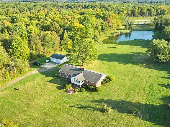 A Rural home with Suburban Amenities in Saybrook! This sprawling 3200 sq ft Ranch is a dream come true! Sitting on 27 acres with public water and sewer located within minutes from Rt 90. Once pulling 700ft up the tree lined driveway you will feel immediate tranquility. Surrounded by trees and privacy. Schedule enough time to take it all in. The Fruit Trees, not one, but TWO large, stocked ponds; one with park like benches and the secondary pond hidden by the thicket of trees. Down the trails you will find an Oil Well with Mineral Rights that will transfer with the sale of the home. Plenty of outdoor storage space offering a two-car attached garage and a pole barn. You will enter the home in wonderment at the brick gas fireplace in the kitchen/dining room, the built in grill and wood beams along the ceiling complimenting the fresh paint, new vinyl floors and light fixtures throughout the first floor. Immediately off the kitchen is a cozy 4 seasons room with new carpet. Entering the living room, you will find the fireplace is double sided and makes for cozy evenings while being captivated by the view through the picture window and comfort of the new carpet and paint. The first floor offers 3 bedrooms with fresh paint, 2 full & 1/2 bath with new mirrors, paint and flooring, breezeway situated conveniently between the garage and kitchen and ample closet space throughout. Down the stairs you will find a fully finished area with walk out access to a patio, gas fireplace, bar, 1 bedroom, 1 full bath, laundry room and storage rooms. This bright and welcoming lower level is an entertainers dream with unlimited possibilities! This home has a secondary driveway on Austinburg Rd.