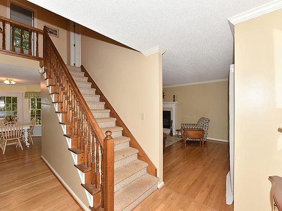 Start packing! Over an acre of wooded privacy surrounds this gorgeous move-in ready 3 bedroom, 2.5 bath home on a cul de sac in a quiet community nestled up to new Cherokee Veterans Memorial Park*Renovated Kitchen*Granite,tile bksplash,new stainless appliances incl.5 burner Samsung stove*Real Hardwood floors main lvl*Newer roof,HVAC,garage doors & openers*3 Large upper level bdrms,incl Master suite w/private ensuite spa bath*Flex space-basemt area*Storage,workshop,playrm?*Highly sought after schools*Easy access to shopping,medical,restaurants*2-10 home warranty provided