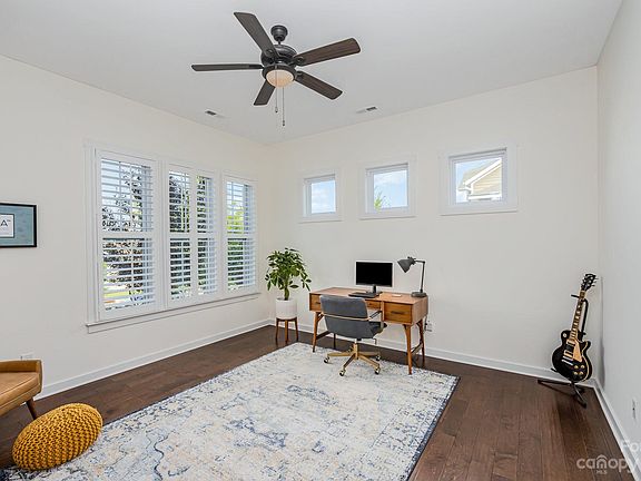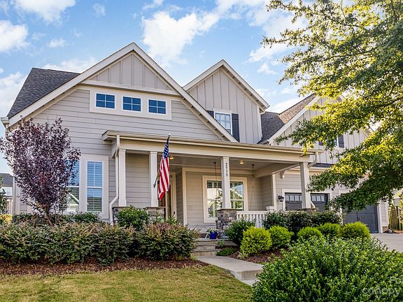 Award winning Fielding Artisan design in Masons Bend. Enjoy the painted sunsets from the front porch swing & the sunrise from your covered back porch! Upgrades include flowing hardwoods throughout the main floor, designer lighting & top of the line kitchen appliances! Enter into your spacious foyer w/formal dining and oversized office w/ons of natural light. Great room features a stone fireplace, custom built-ins and is open to the kitchen . Chef's kitchen is like a model home w/white cabinetry, quartz countertops, custom tile backsplash, SS Appliances, breakfast bar & a butlers pantry for extra space! Luxurious primary suite on main is a true place to relax. Private ensuite with custom tile standing shower, large soaker tub, dual vanities and oversized closets. Upstairs a large loft, 3 bedrooms & 2 updated baths complete the home. Just a quick walk to the Community Pool, Gym & community river access! A few minutes to I-77 to access all the Charlotte & surrounding areas have to offer.