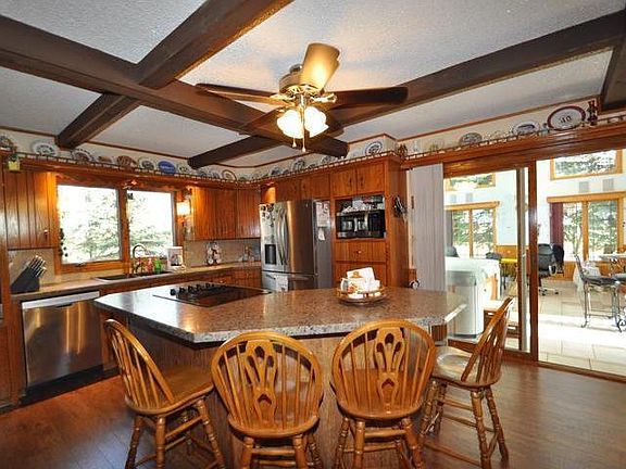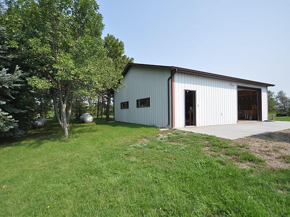 Looking for a small hobby farm that is Zoned for horses? Check out this 3,400 plus square foot home on 5 acres & mature trees close to town. You will find a 32 X 36 steel/maintenance free Heated Shop w 220; powered overhead door and a 40 x 100 all steel Cold storage building/horse barn with 2 overhead doors. 4 season sun-room has Hot Tub & heated floors.The kitchen has many updates & the master suite has a ceramic tile shower. There is room for a 4th daylight bedroom in the lower level & it's stubbed for a kitchenette. Included are two 1000 gallon propane tanks and 3 Air Conditioning Duct-Free Systems in the sun-room & two bedrooms. There is a New 5 zoned Hot Water furnace installed/2014 along with shingles & steel siding in 2011. Features Central Vac, Andersen windows, new counter tops, flooring, appliances, vaulted living room ceilings, 2 gas fp's, Garage stairway to basement, 3 water hydrants & area with pasture fencing. Bar ref, hot tub washer & dryer included. Rural Water/