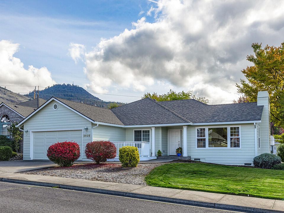 This ONE owner, custom built by Mahar Homes w/open floor plan & so much natural light is truly a FIND! Tiled entry into large, vaulted living area w/gas fp opens to a windowed eating or game area & the spacious kitchen w/breakfast bar for 4, lots of counter space & cabinet storage. Beautiful blt-in bk shelves in the hall lead to the king-sized, vaulted master suite w/walk-in closet, shower & a window wall to the bkyd landscaped retreat w/apple & peach trees & mtn. views! There's also 2nd BR & 3 BR (office) w/access to hallway 2nd full bath & laundry/mud rm w W/DR leading to the 2-car gar. Major upgrades include roof ('20), A/C and gas furnace ('21), kitchen faucet ('21) & DW ('22), exterior paint ( '23).