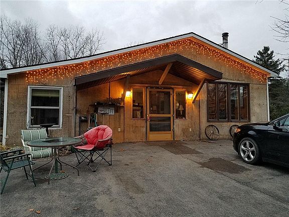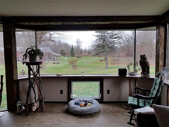 When talent meets nature you get an absolute one of a kind little piece of heaven. This simple 3 bdrm ranch is updated and ready for you to settle in and call home. Spacious kitchen, formal dining, remodeled bath, amazing view from your living room and a 576 sq ft familyroom/gaming area w/ access to a 11' x 24' three season porch/greenhouse area. Realist sq ft does not reflect familyroom/living room additional sq ft added. House can be heated by oil or by wood. Two large wood stoves. Almost 1400 sq ft in your partially finished walk out basement that includes a great shop area! For the hobbyist or collector extraordinaire... There is an Astounding one of a kind 5000+ sq foot barn/outbuilding, separate garage and a playhouse too! All this and Over 4 acres of privacy with pond and room to roam! If you are wanting privacy this is the place!