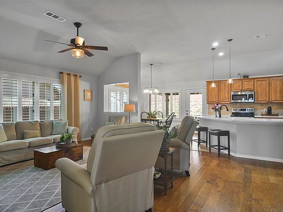 Built in 2004 but looks and shows like a brand new model home. fantastic open floorplan with split bedrooms and great layout. the updates this seller has done are incredible and include both baths, kitchen, back porch, updated heat and air, roof, windows, hardwoods in all public areas, plantation shutters in public rooms. ceiling fans and much more.parklike yard with covered front porch and professionally done covered back patio. in beautiful Mountain valley and a block from the lake and amenities. Burleson Address with Joshua ISD. this is truly a must see in this price range..