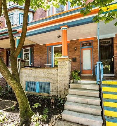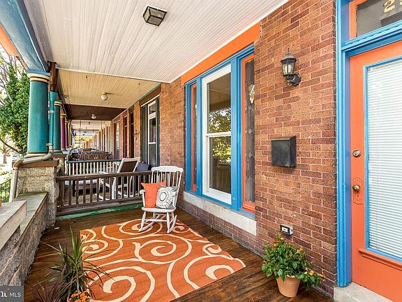 Circa 1912 Charles Village vibrantly painted porch front town home. This charming renovated 4 level property offers an expansive traditional floor plan blending old world charm with contemporary design and modern amenities. The residence boasts 2,174 sq. ft. of finished living space with 5 bedrooms, 3 full and 1 half baths, an inviting entry and foyer, stunning living room with large window framed in stained glass, delightful separate dining room, and cook's kitchen with wood cabinetry, honed granite countertops, eye-catching brick wall, original in-laid wood flooring, gorgeous staircase, high ceilings, recessed lighting and skylight for natural interior lighting. The home is completed with a lovely second level balcony off the rear bedroom, a fabulous urban garden, lovely brick patio, new fencing, and a newly installed concrete parking pad. The unique Charles Village neighborhood of whimsically painted homes offers the perfect blend of quaint urban living with an ideal location. The neighborhood is listed on the National Register of Historic Places as a distinctive, well-defined neighborhood in Baltimore City. The home is conveniently located close to hospitals, Johns Hopkins University, pubs, restaurants, cafes, museums,major streets and highways.