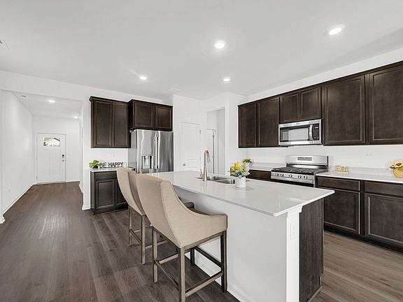 Large islandAbundant natural lightPrivate primary suiteCustom windowsAiry interiorOpen-concept great roomCovered back patio