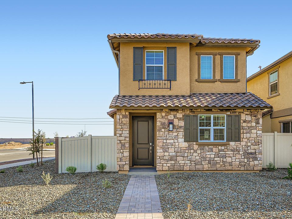 Seller is offering a credit toward a rate buydown and closing costs with our preferred lender ask us how you can save thousands over the life of your loan! Western Garden is a brand-new master-planned community located in Phoenix, AZ. Residents here enjoy close proximity to a variety of nearby local attractions, like State Farm Stadium, Westgate Entertainment District & Wildlife World Zoo as well as exclusive onsite amenities coming soon such as a gorgeous swimming pool, pickleball courts, playgrounds and more! This home comes fully equipped with all brand-new stainless steel kitchen appliances and is complete with 6x36 tile flooring, modern quartz countertops and stylish maple linen cabinetry. Photos are of actual home. A copy of the public report is available on the ADRE's website