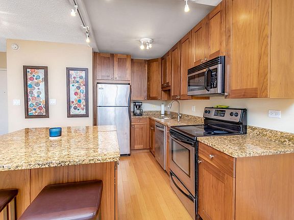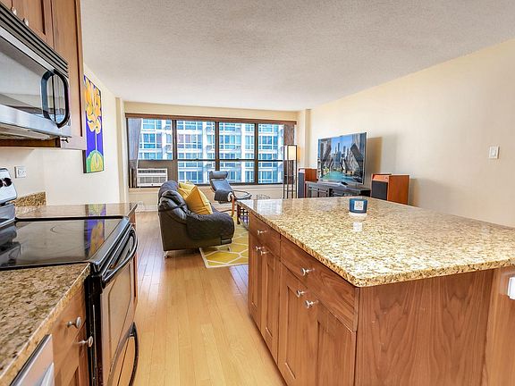 Welcome to this wonderful east facing unit in East Lakeview! This unit has an open floor plan, hardwood flooring throughout the living space, and large wall to wall windows that let in tons of natural light. The kitchen has 42 inch shaker cabinets, granite countertops, stainless steel appliances, and a large eat-in island ideal for food preparation and entertaining. The recently remodeled bathroom has subway tiles in the bath, porcelain tile flooring, and a modern vanity. The large bedroom also has wall to wall windows along with a large walk in closet fitted with organizers. In unit washer/dryer combo (could be swapped out for a stackable washer/dryer if preferred) plus a valet parking spot included in the price! The building features a large rooftop deck with amazing 360 degree views and common grills, exercise room, party lounge, and onsite management. Amazing location close to the lake, North ave beach, the lake shore path, the Lakeview nightlife, and public transportation. Schedule a private tour and click the link for an exclusive 3D tour.